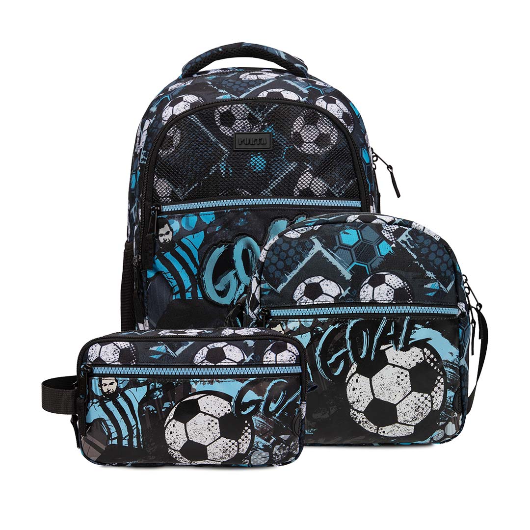 MOCHILA LOREN BLUE FUTBOL + LONCHERA LOREN BLUE FUTBOL + CARTUCHERA LOREN BLUE FUTBOL