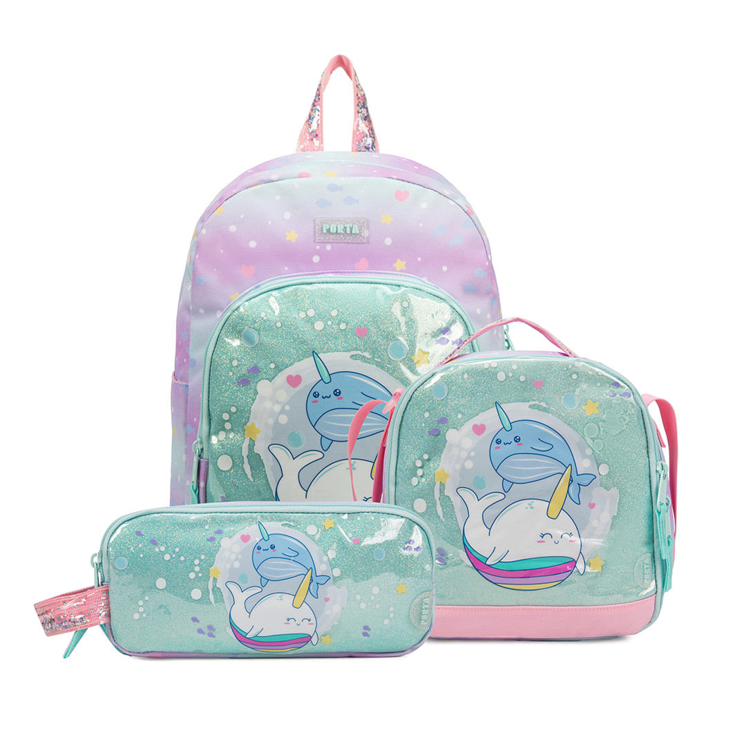MOCHILA ANI NARVALES + LONCHERA ANI NARVALES + CARTUCHERA ANI NARVALES